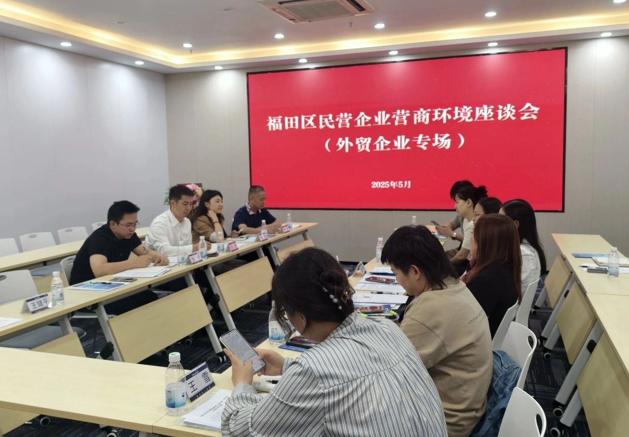 5月15日下午,福田区民营企业营商环境座谈会(外贸企业专场)在海域科技集团组织召开。福田区经济发展促进会、深圳市进出口商会相关负责人与海域科技集团高层领导,以及来自十余家外贸企业的代表共同出席了本次座谈会。