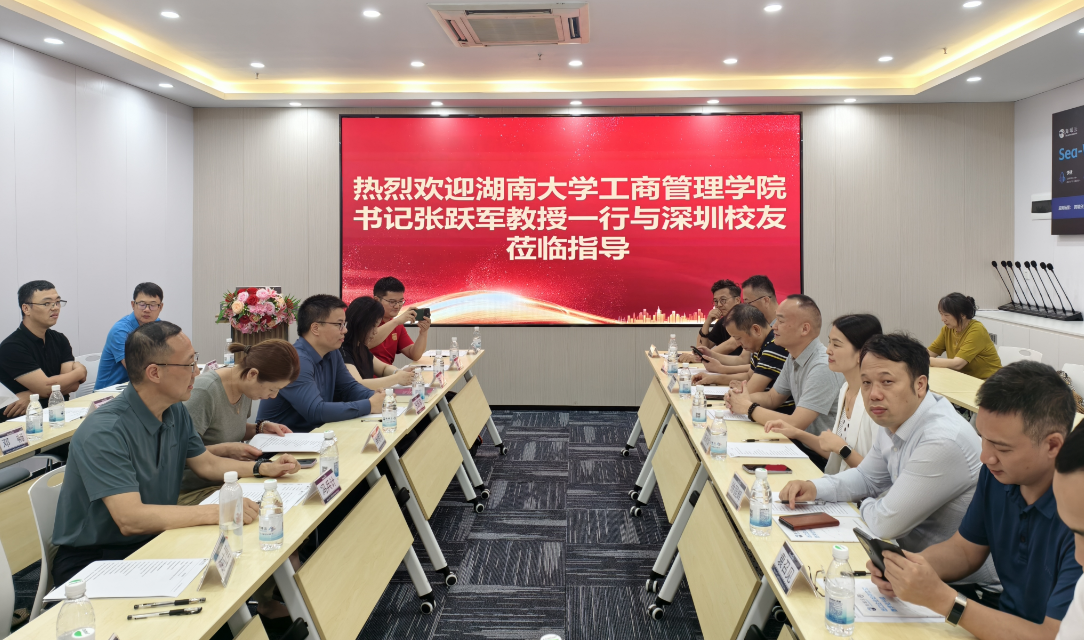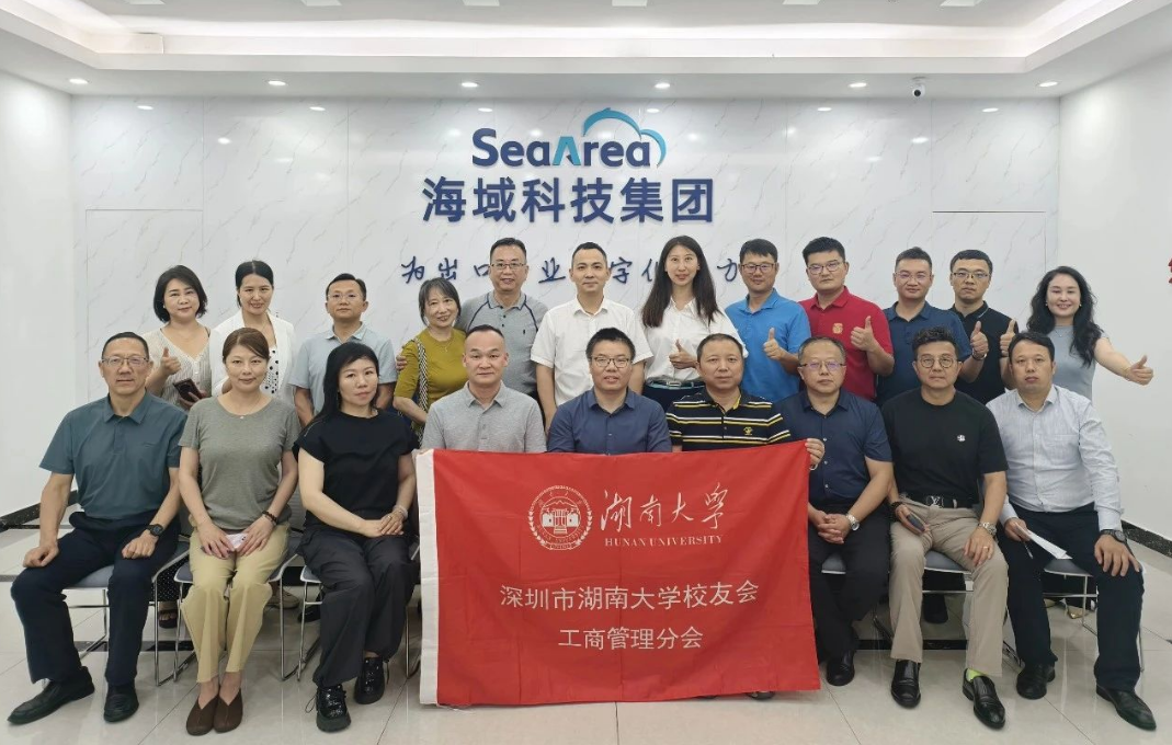2025年5月19日,湖南大学工商管理学院党委书记张跃军教授率学院教师代表及深圳校友一行莅临海域科技集团参观指导,集团董事长谭宏兴及高管团队热情接待并陪同交流。