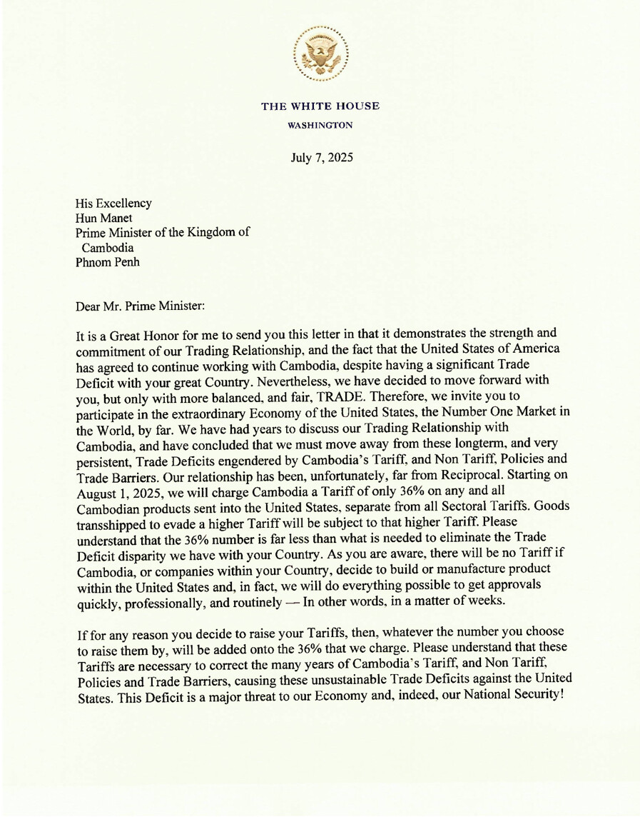 信件中,特朗普除说明加征关税外,还威胁对方不能报复,否则美国还会继续加税。然而当地时间7日,特朗普在宣布加征关税后,又签署行政令,延长所谓“对等关税”暂缓期,将实施时间从7月9日延迟到8月1日。