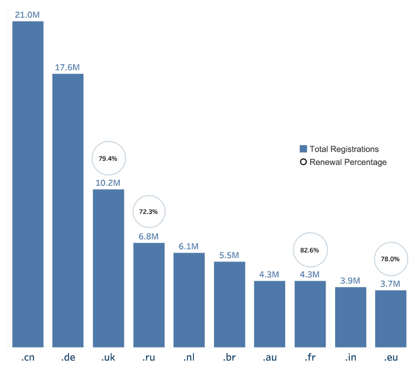 根据verisign的数据统计,截止至2025年第三季度末,国别域名注册量排名前 10 的 ccTLD 是.cn、.de、.uk、.ru、.nl、.br、.au、.fr、.in 和 .eu。以下是对这些国家域名后缀的简要介绍: