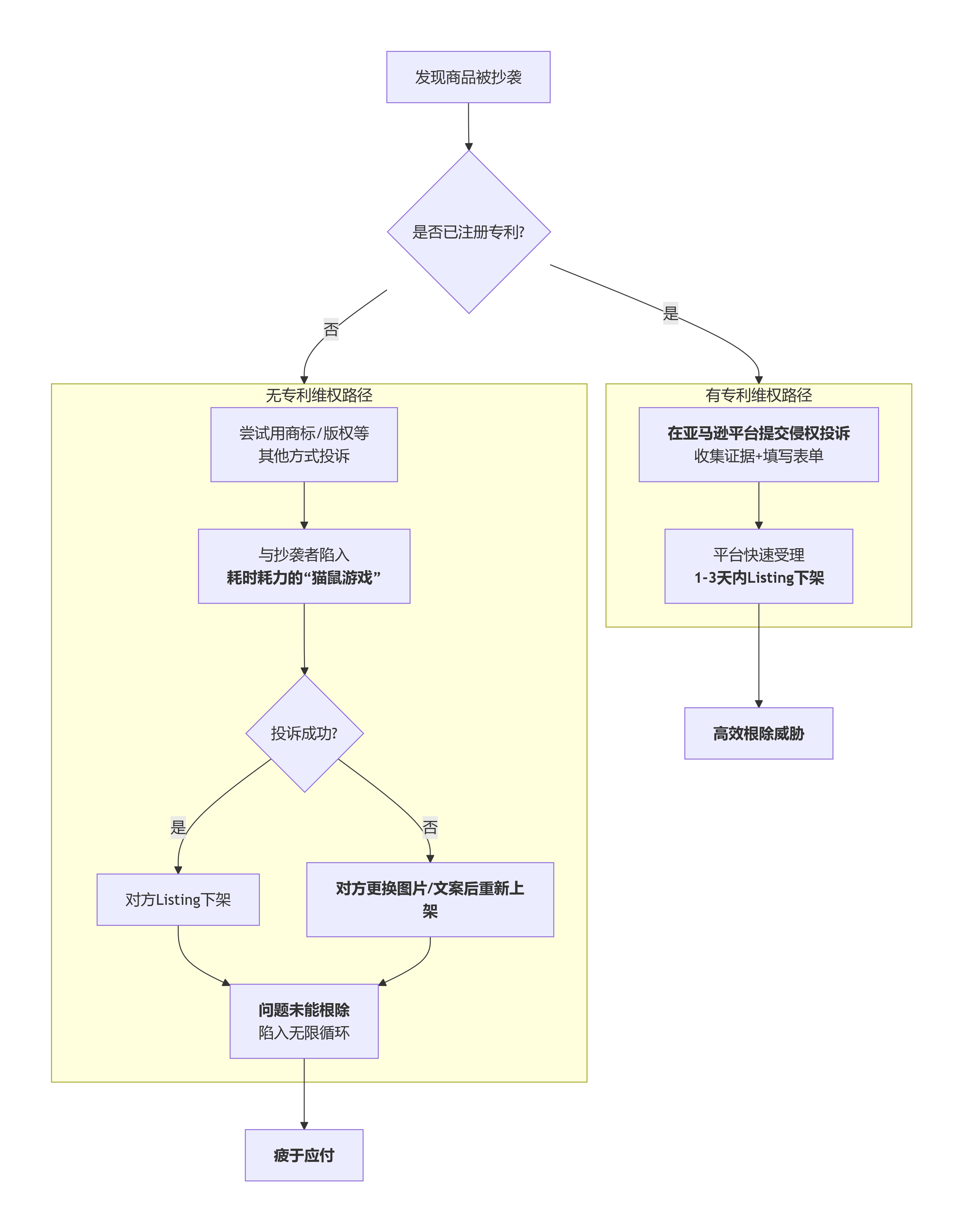 在产品上架前,哪怕多花一点钱、多等一段时间,也一定要为核心设计申请专利! 这不仅仅是多一张证书,而是为你未来的生意买了一份“战斗保险”。有专利,你保护的是整个产品类别;没专利,你只能保护几张图片和几个词。