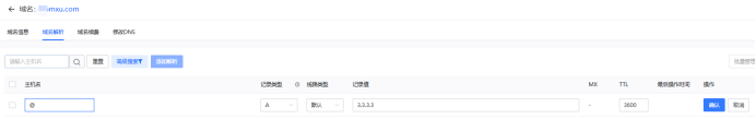 示例如下:主机名(通常指子域名的前缀,若域名是www.example.com 填写WWW,若域名是example.com,填写@)记录值(通常是IP地址),其余值默认。